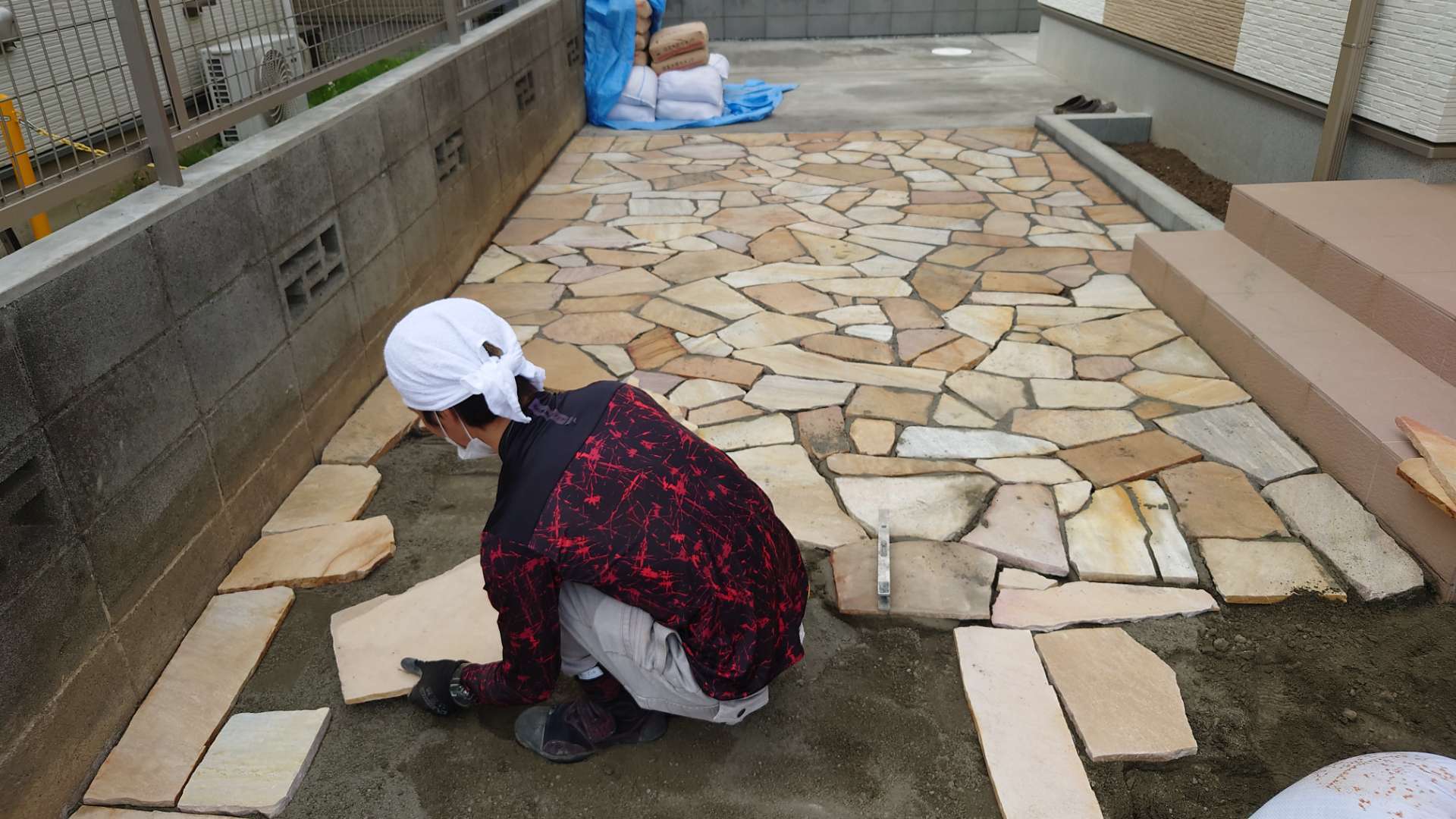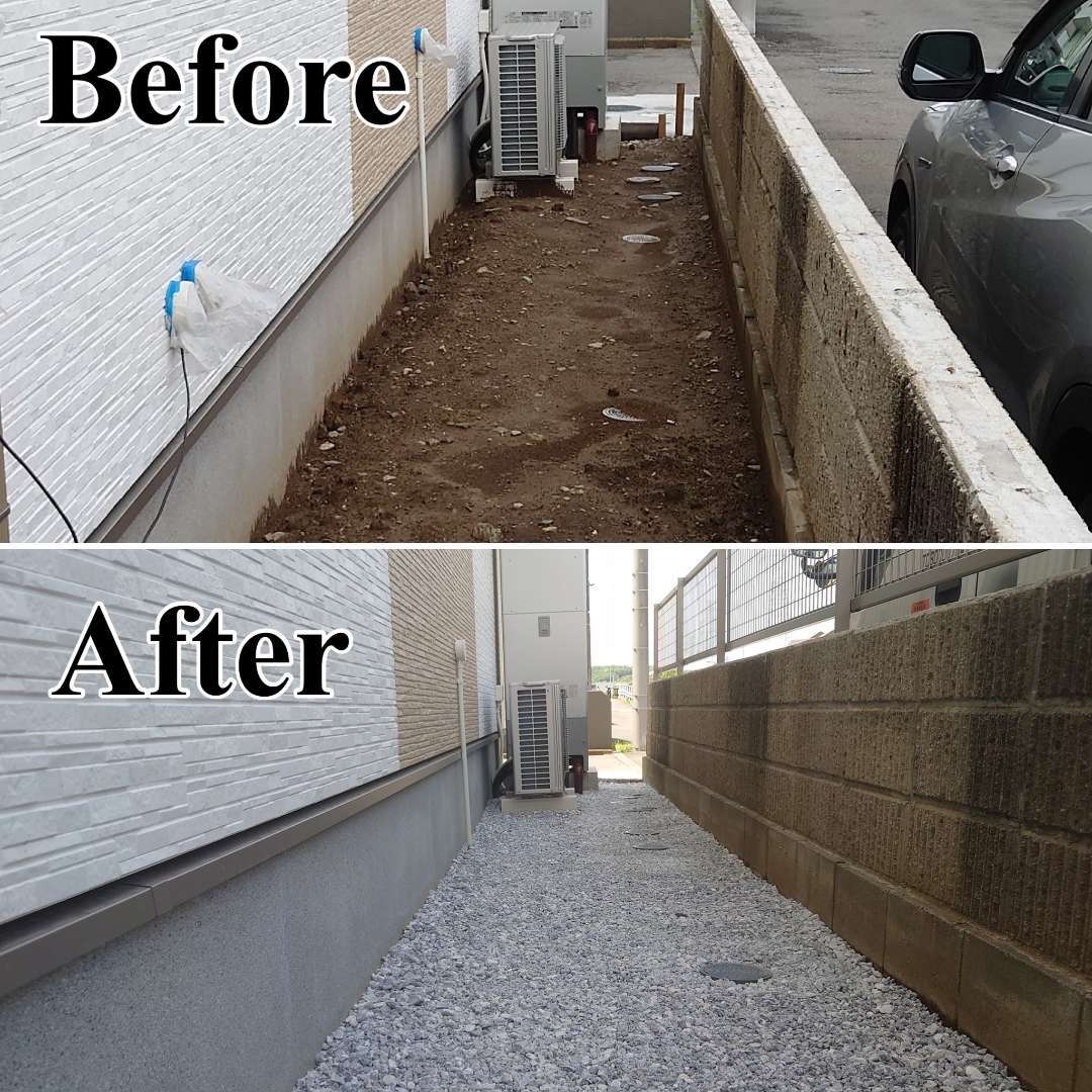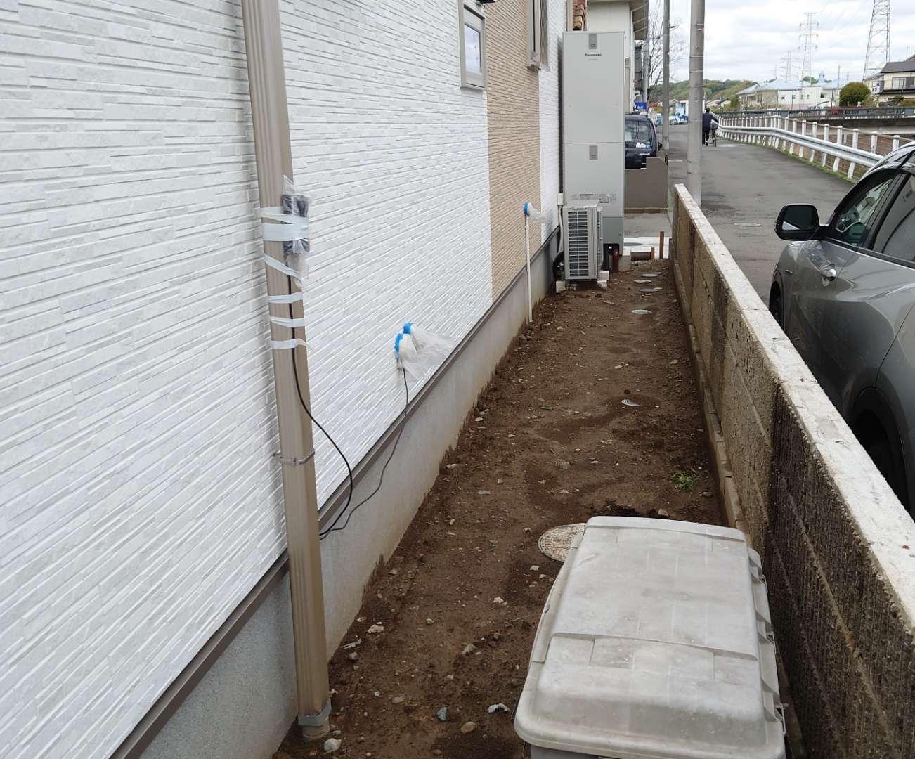 土で囲まれた箇所を舗装したいとのことでご依頼いただきました。