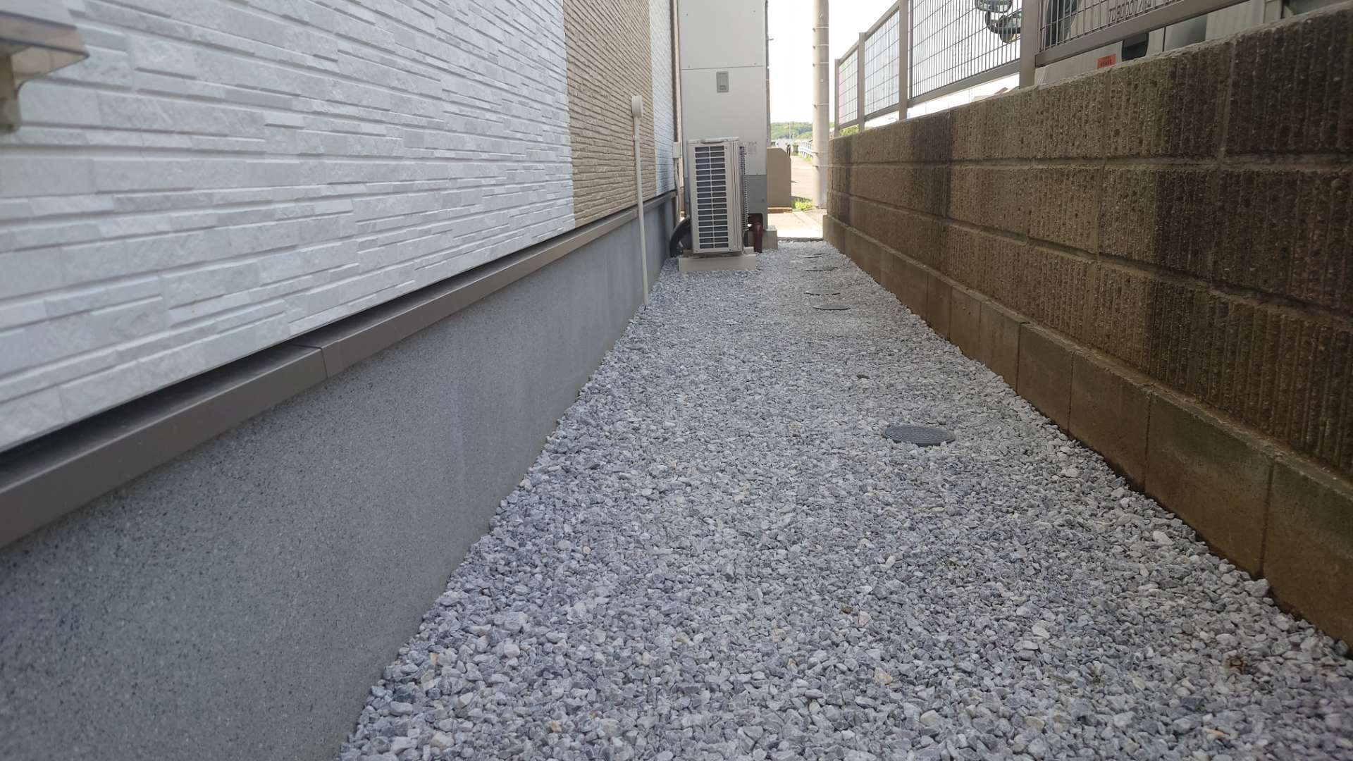 白やグレーがかったカラーが数種類ある砂利を敷き詰めました。