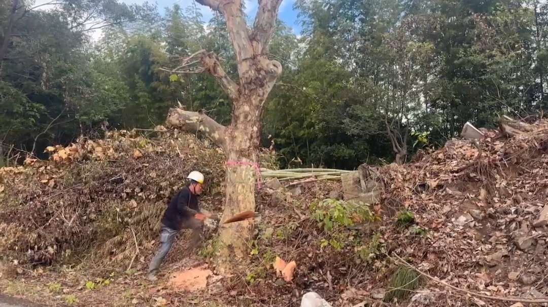 こんな大きな木を切り倒すのも一苦労な作業ですね!