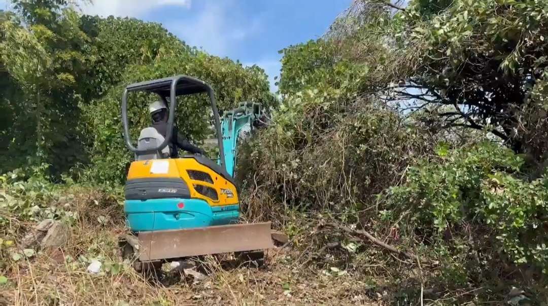 こちらのユンボが草木をつかんで伐採している様子がまるで、